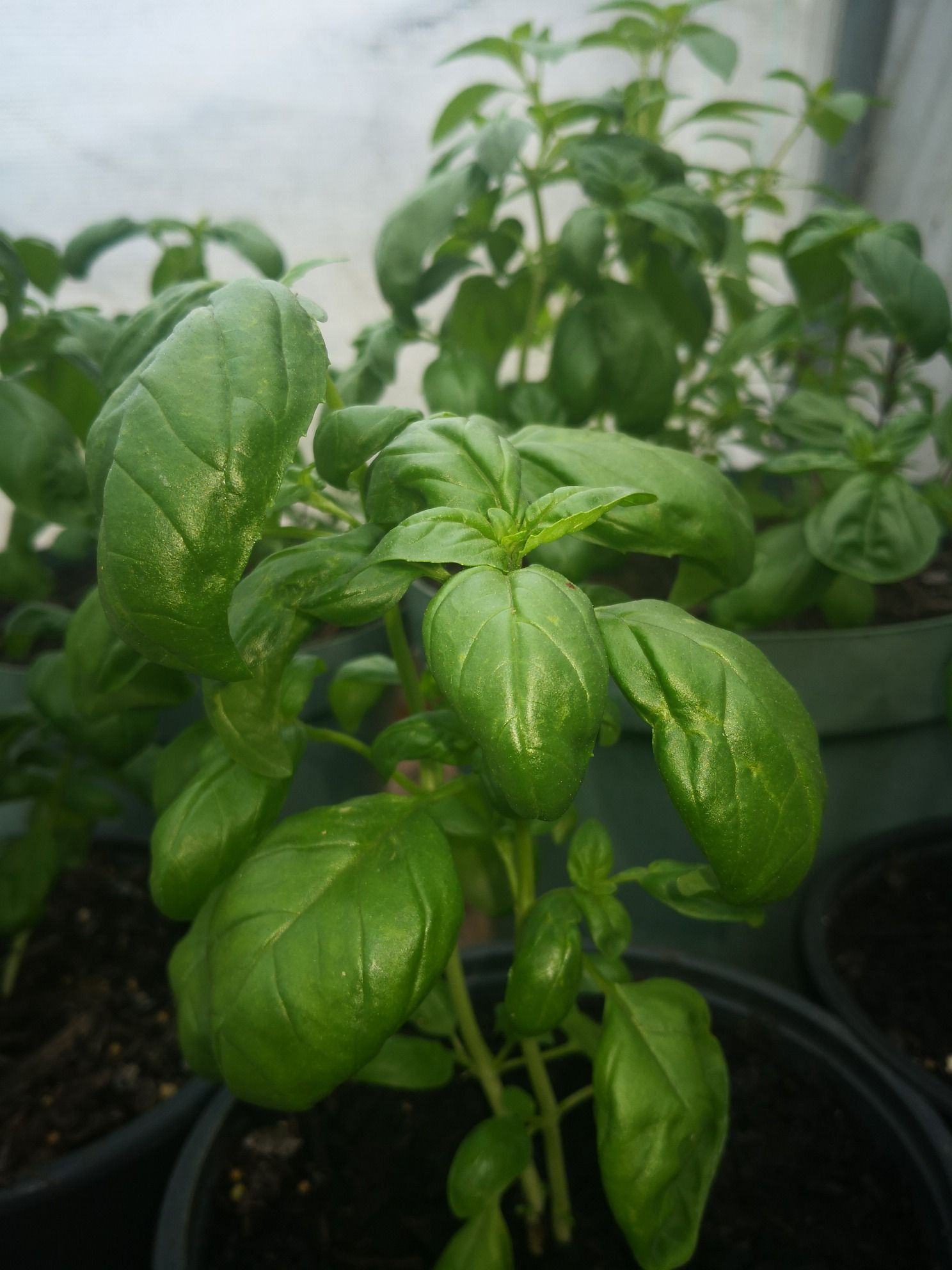 It's basil week at Mississippi Herbs - plenty of six-packs, small pots and a few big pots & mixes of sweet green, lemon and Thai basil.